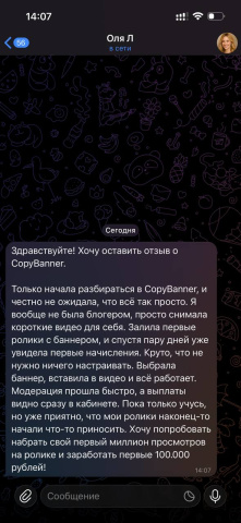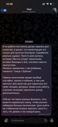 CopyBanner стал для меня простым источником ежедневного дохода.